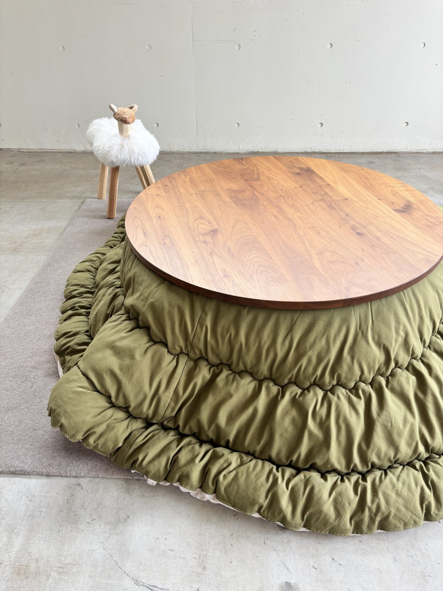 冬はぬくもりを、春夏はそのままローテーブルとして、どんな季節にも暮らしの中心にあり一年を通してリビングにやさしい雰囲気作ってくれるアイテムになります。
