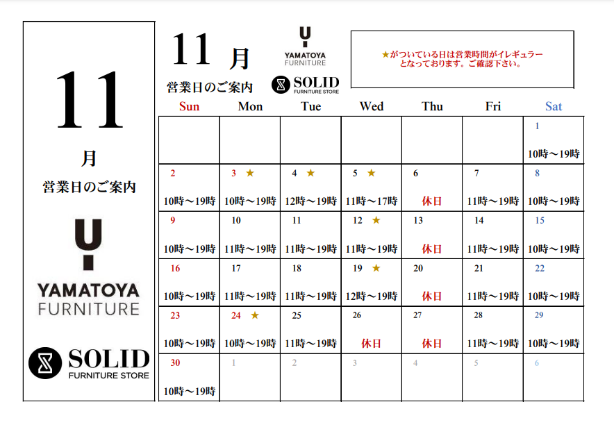 2025年11月の営業日案内