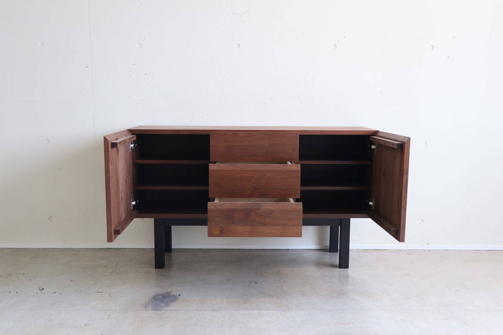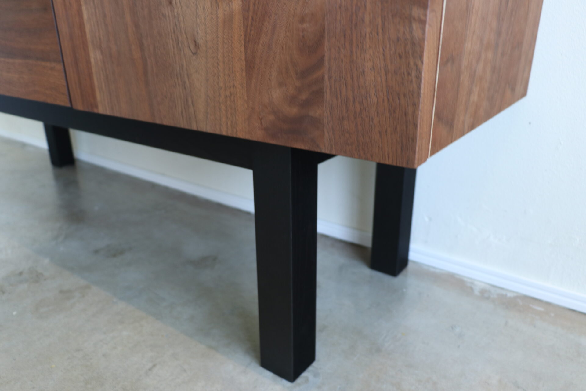 脚は黒で締りがあります。また、別注でボディーと同じ材で脚を作ることもできます。