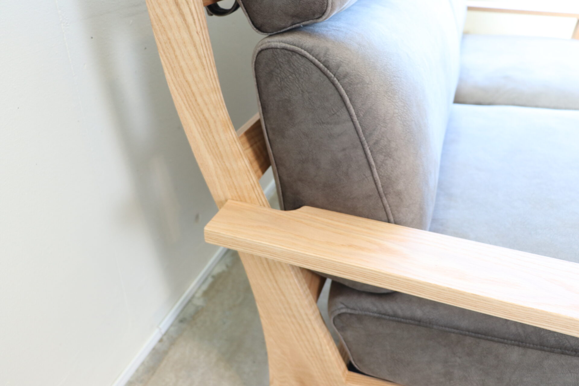 肘の木部分は幅がしっかりとあるため、本やスマートフォンを置きながら使っていただけます。