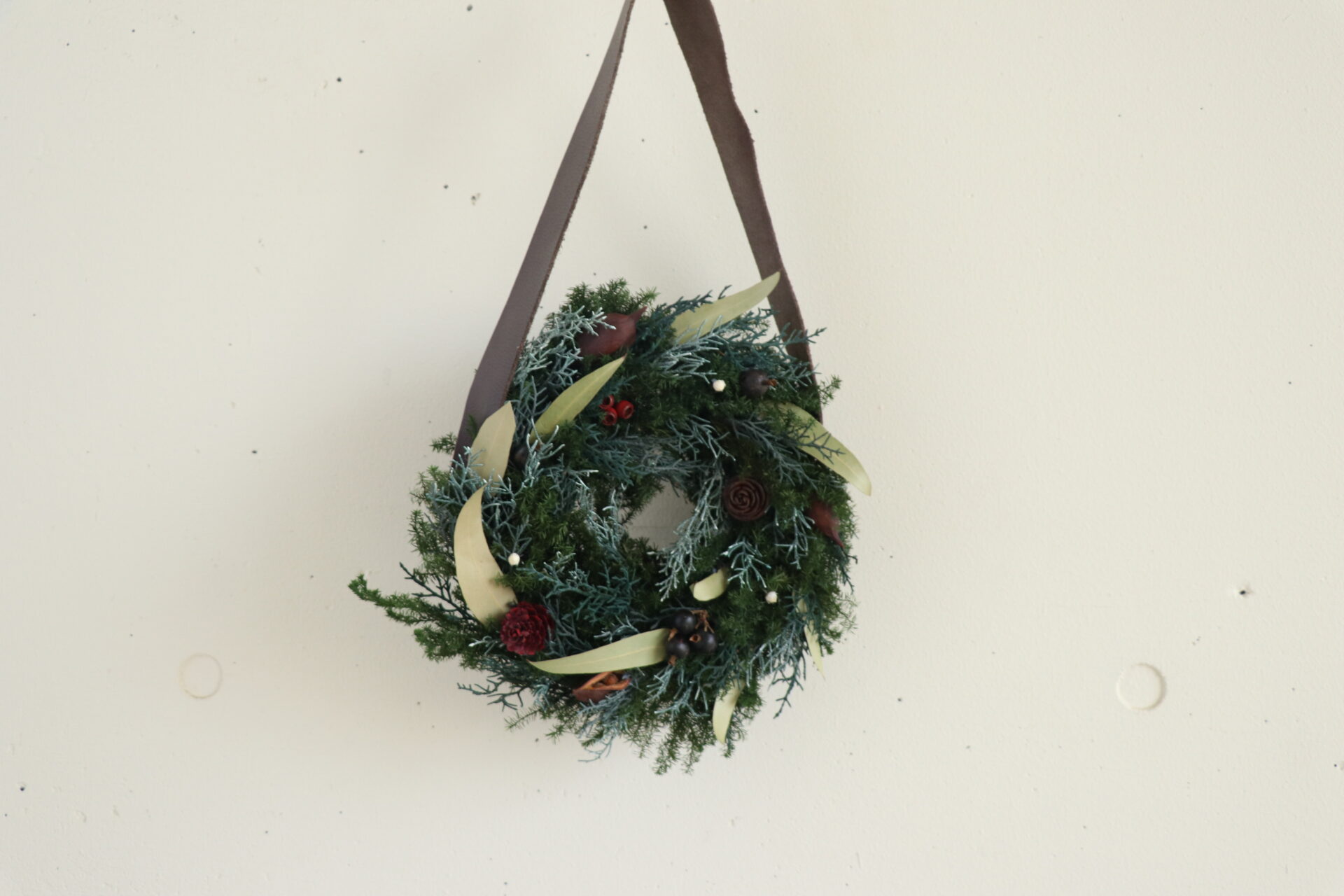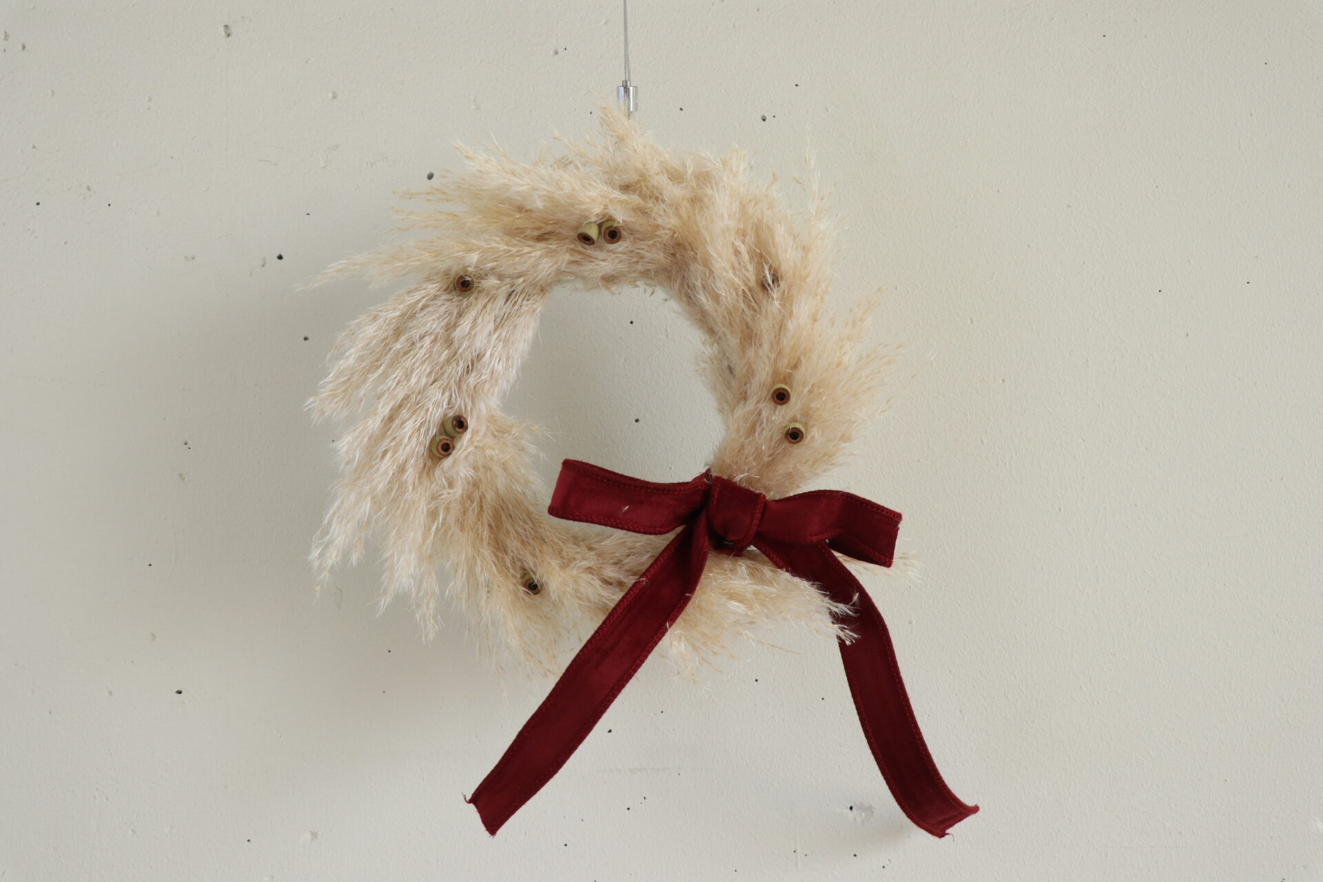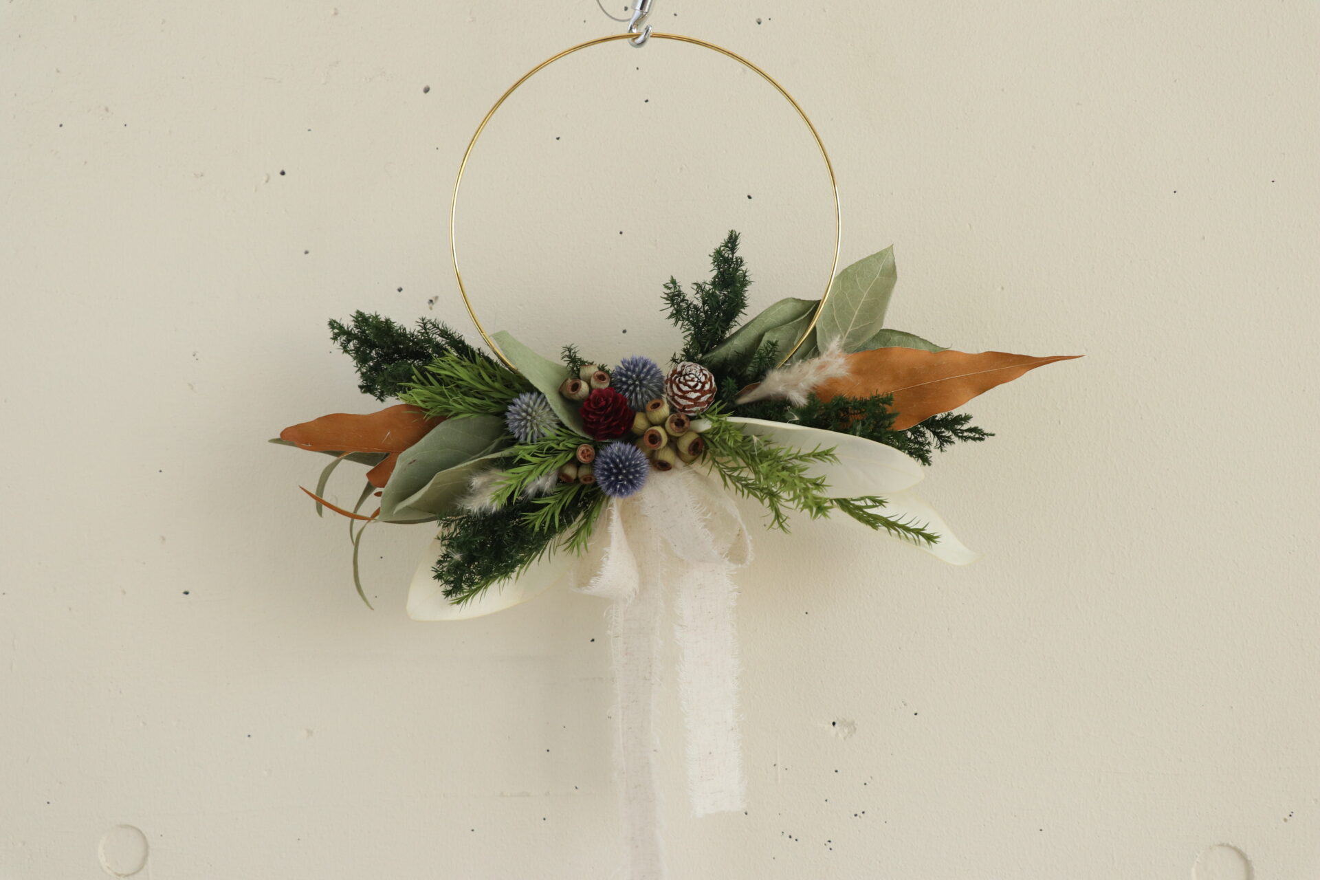 こちらはリングを基調としたスワッグの雰囲気も楽しんでいただけるリースです。